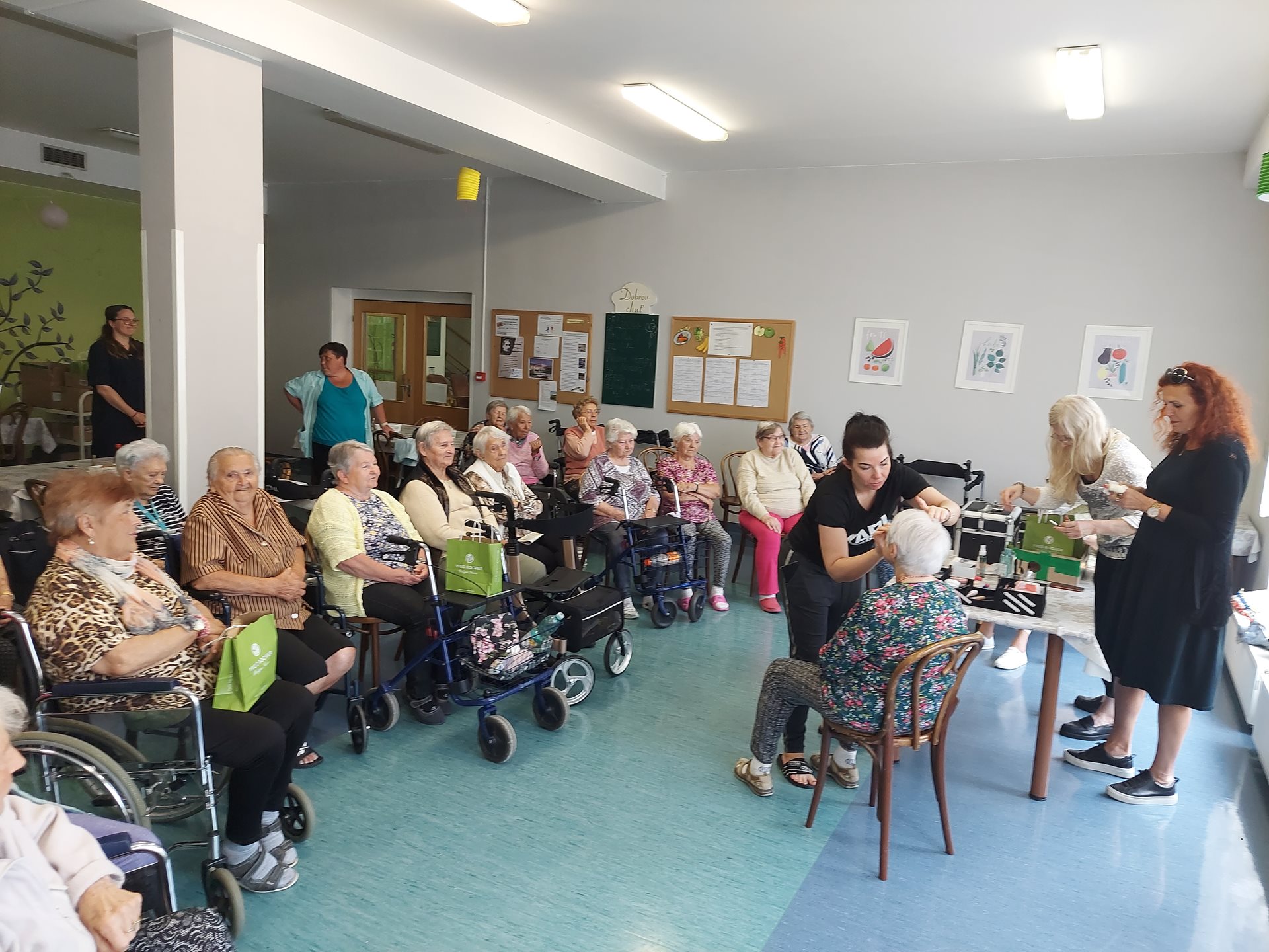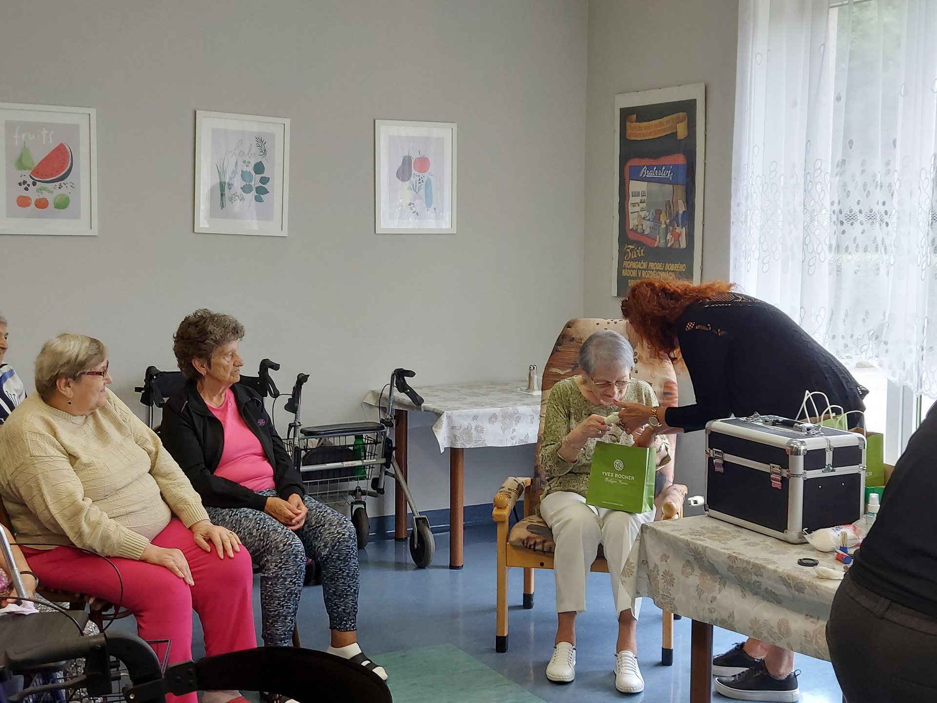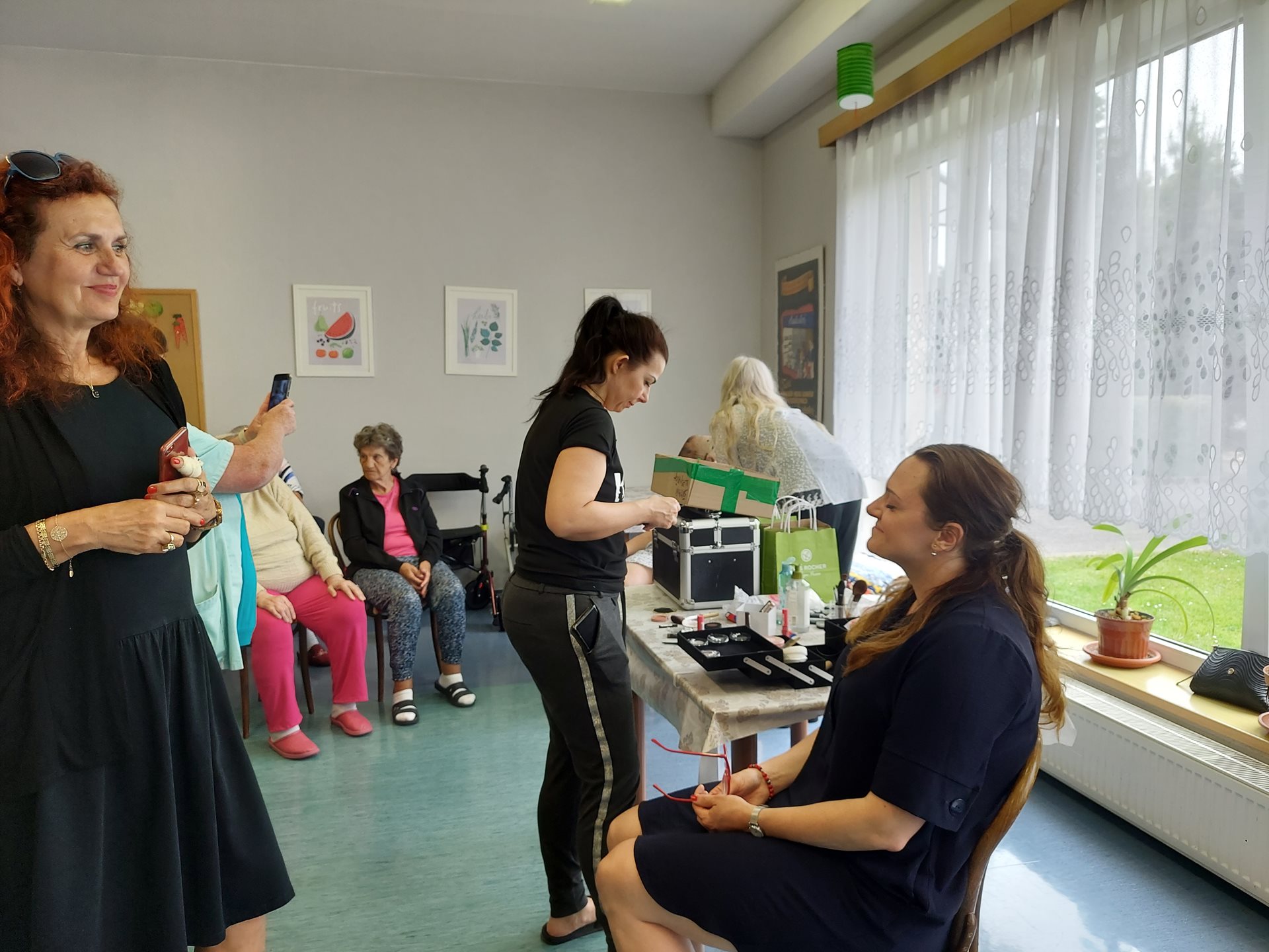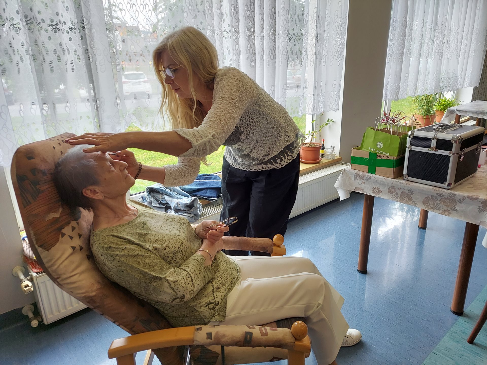 Po počátečním ostychu se klientky nechaly zkrášlit a dostaly dárkovou taštičku s kosmetikou.