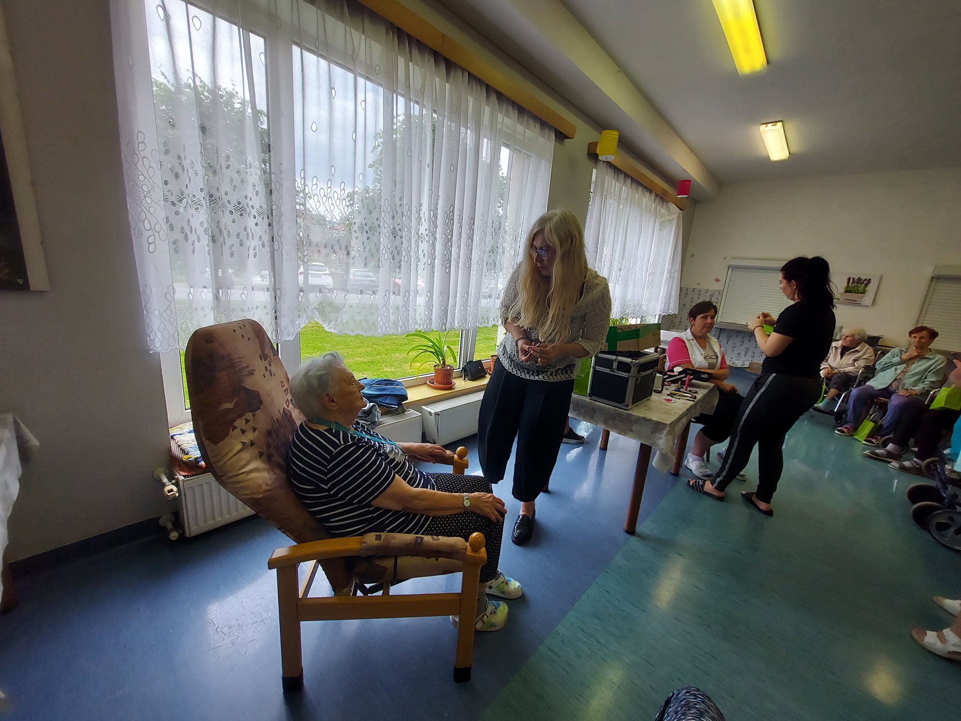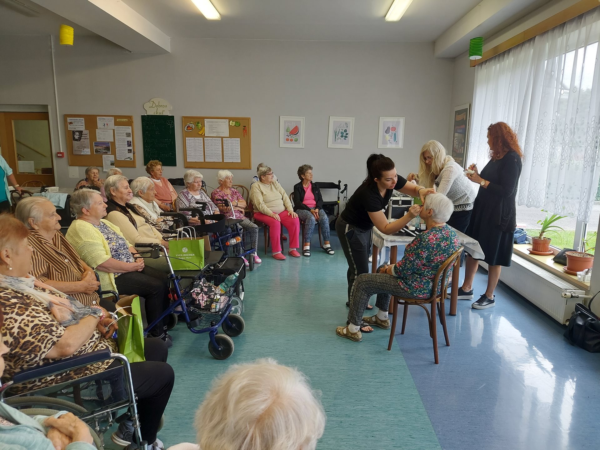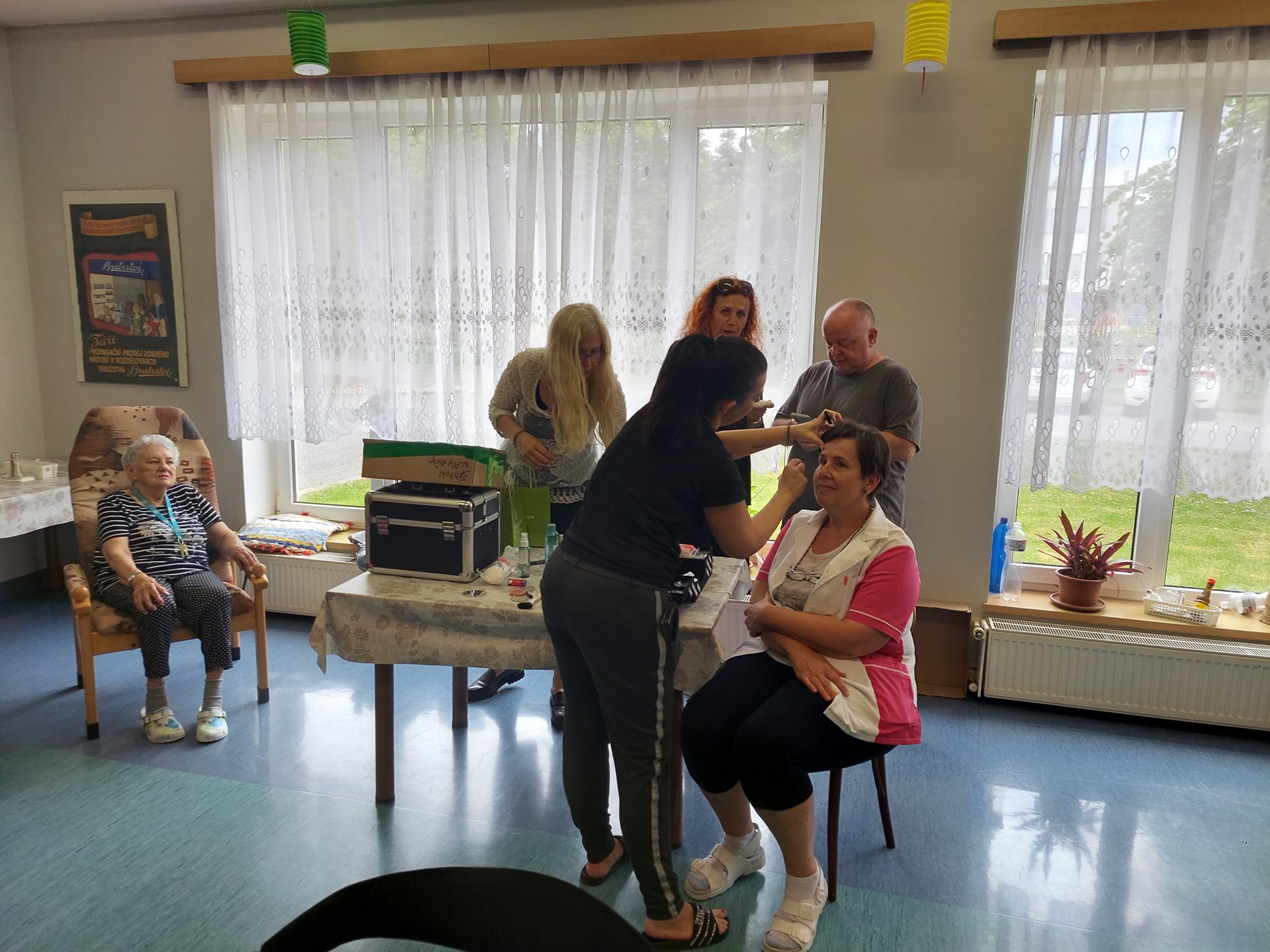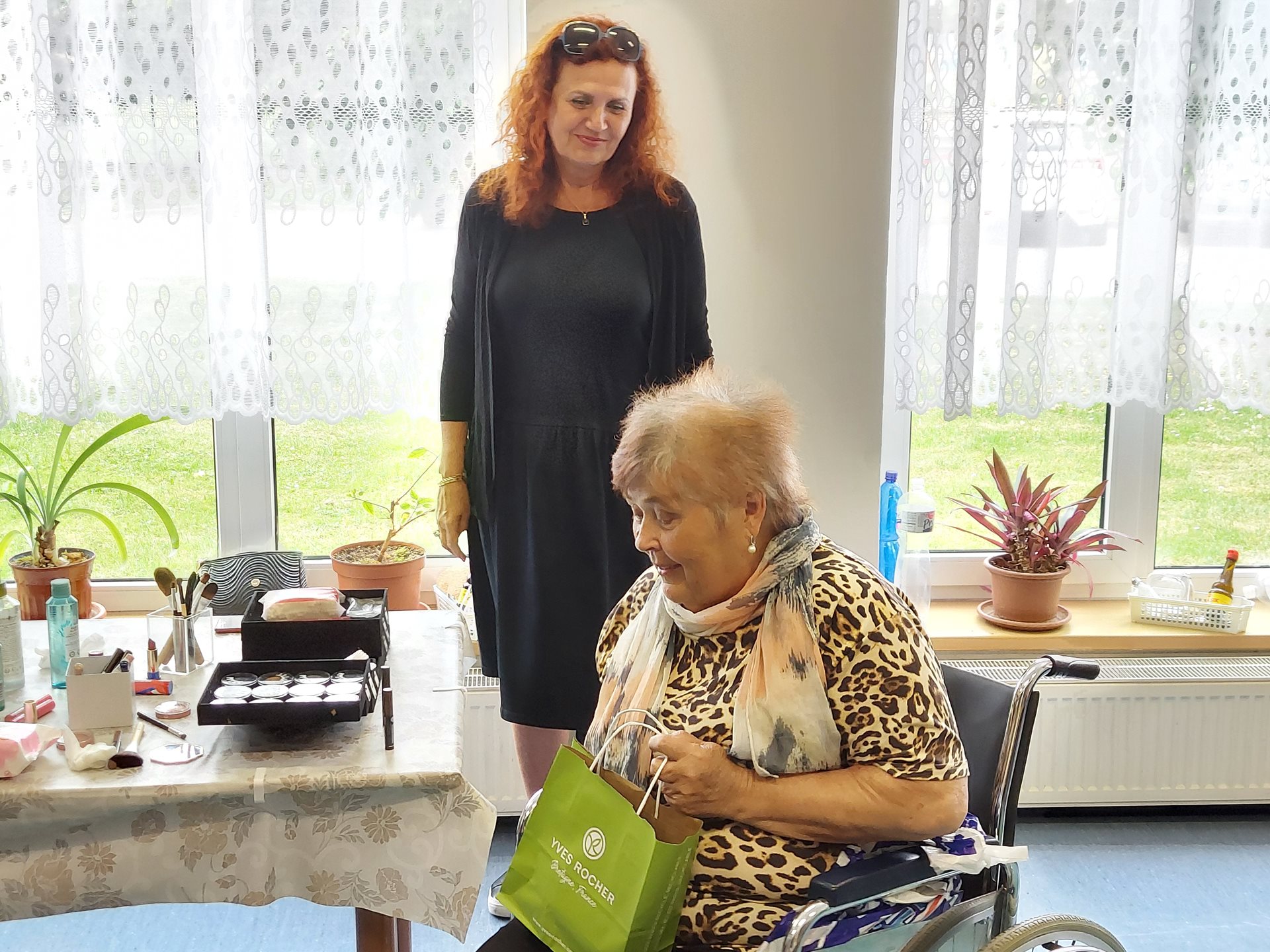 Po počátečním ostychu se klientky nechaly zkrášlit a dostaly dárkovou taštičku s kosmetikou.