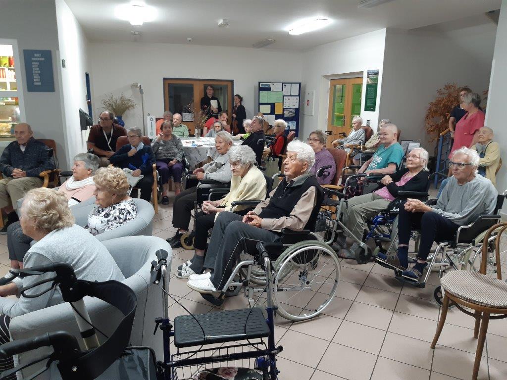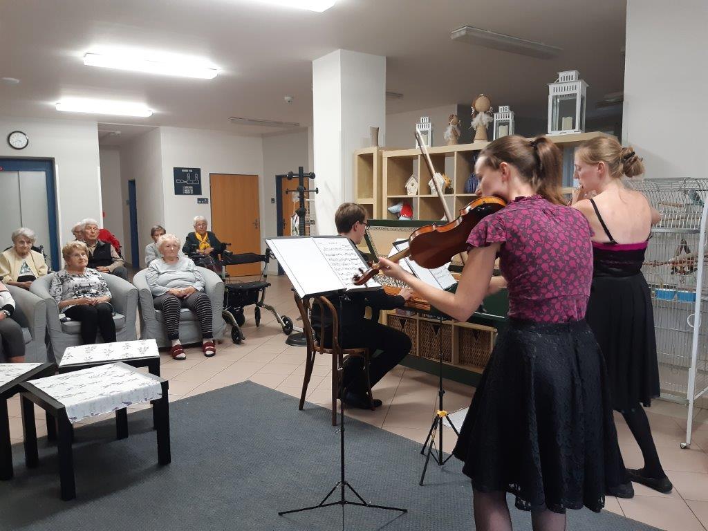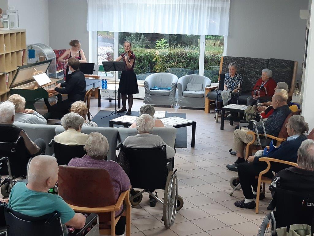 Krásná barokní hudba z 16. až 18. století zněla v pátek 4. listopadu vstupní halou v Domově V Zahradách ve Zdicích. Navštívila nás paní Stanislava Spoustová z Ústavu Antonína Dvořáka pro kulturní život seniorů a s ní umělci, kteří zahráli našim klientům skladby našich i světových skladatelů. Zazněly skladby od Antonia Vivaldiho, Jean-Marie Leclaira, Jana Jakuba Ryby, Georga Friedricha Händela a George Philippa Telemanna. Libé zvuky houslí, flétny a cembala přilákaly mnoho posluchačů z řad klientů i personálu. Bylo to milé a vítané zpestření pochmurného podzimního odpoledne. Umělci byli odměněni srdečným potleskem a já za všechny ještě jednou děkuji za nádherný zážitek členům komornímu souboru NiTrio Šárce Petříkové, člence skupiny prvních houslí Národního divadla, Evě Prchalové, člence folklórního souboru Jizera a Ondřeji Valentovi, varhaníkovi pražské kapituly na Vyšehradě.