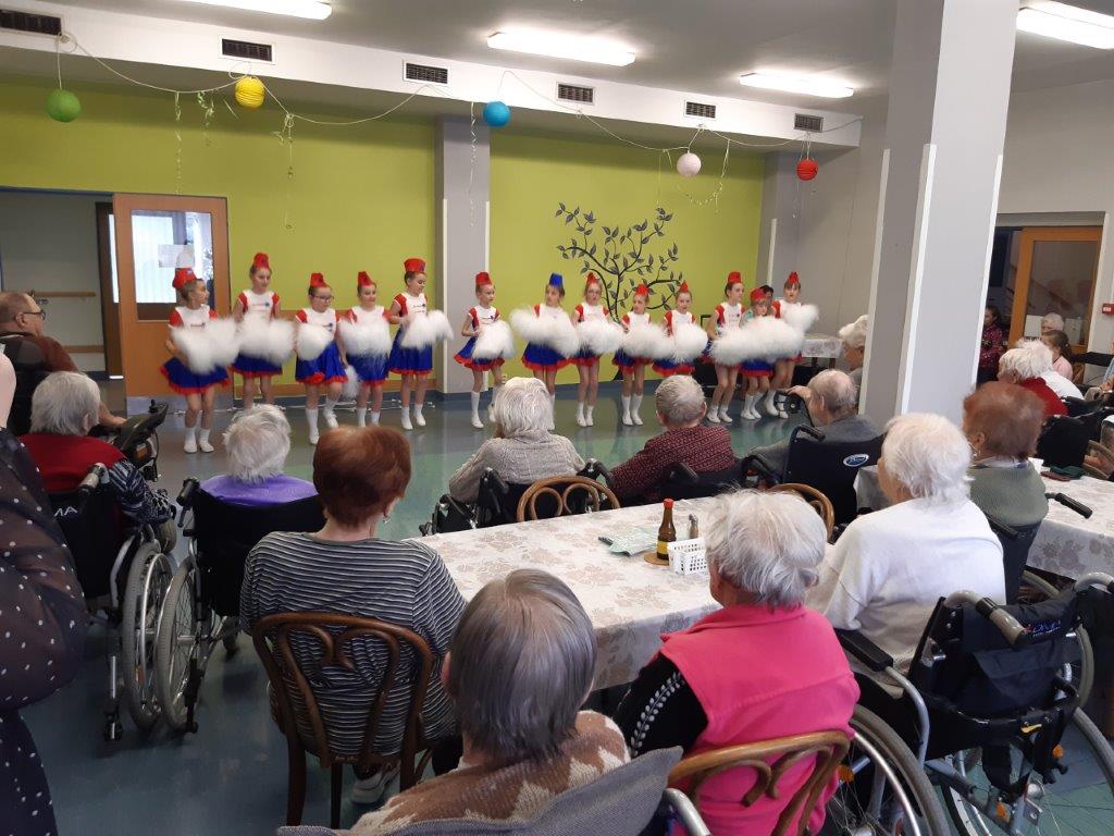 Plná jídelna diváků čekala na vystoupení malých mažoretek z Berouna. Jejich vystoupení bylo krásné, sklidily nejen dlouhý potlesk, ale i obdiv našich klientů.
