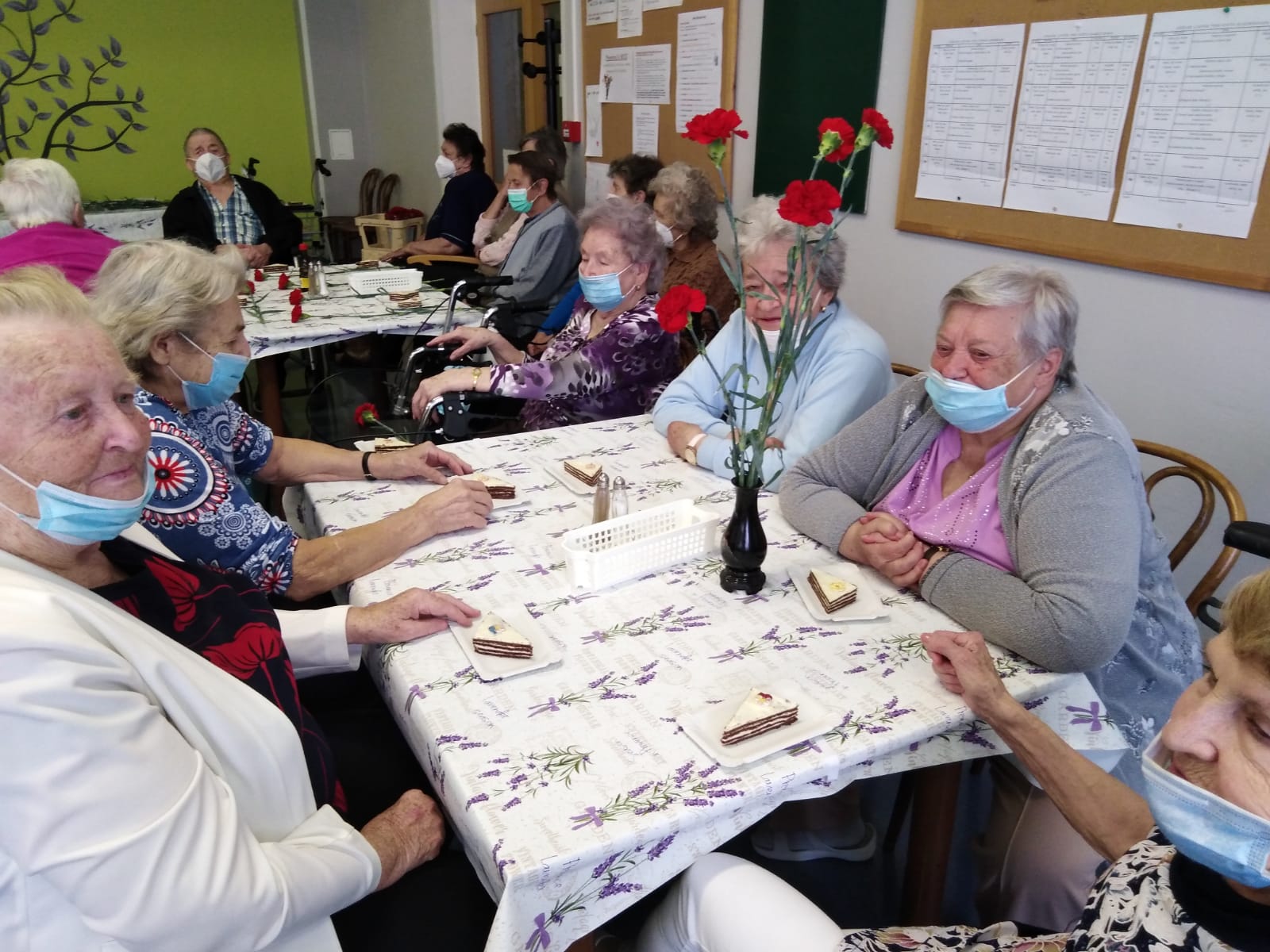 Společně jsme poseděli u kávy a zákusků, každá klientka dostala květinu a poslouchali jsme písničky na přání. Posezení bylo příjemné.