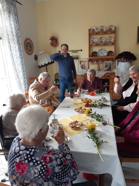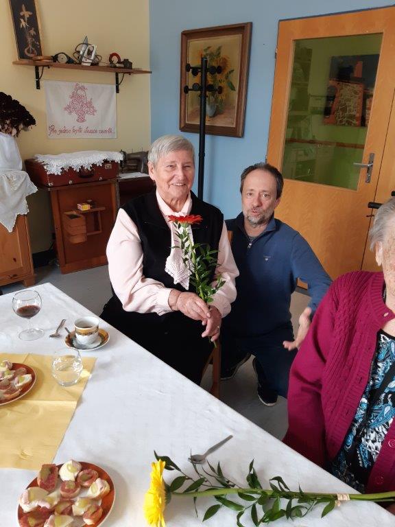 Oslava narozenin v dubnu se nesla v komornějším duchu, oslavenců se nesešlo tolik jako minulý měsíc, ale nálada byla dobrá. Na dortu si všichni pochutnali a dámy měly radost z krásných květin.