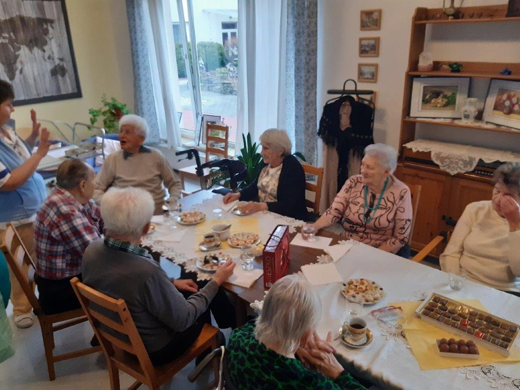 Stává se tradicí, že pořádáme každý poslední čtvrtek v měsíci malou oslavu pro všechny klienty narozené v daném měsíci. Máme vždy nejen hezký, ale hlavně dobrý dort, který upečou pracovnice aktivizace. Kdo nemůže, nebo nechce přijít, dostane svůj kousek dortu na pokoj. Pro přítomné je připraven přípitek, malé pohoštění a příjemné posezení v Reminiscenční místnosti.