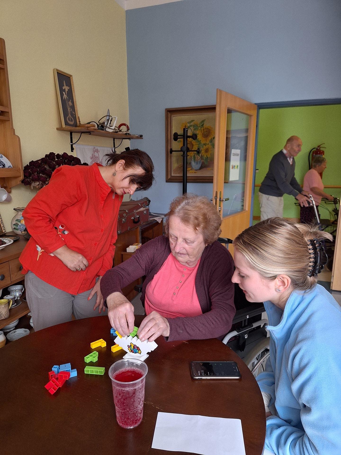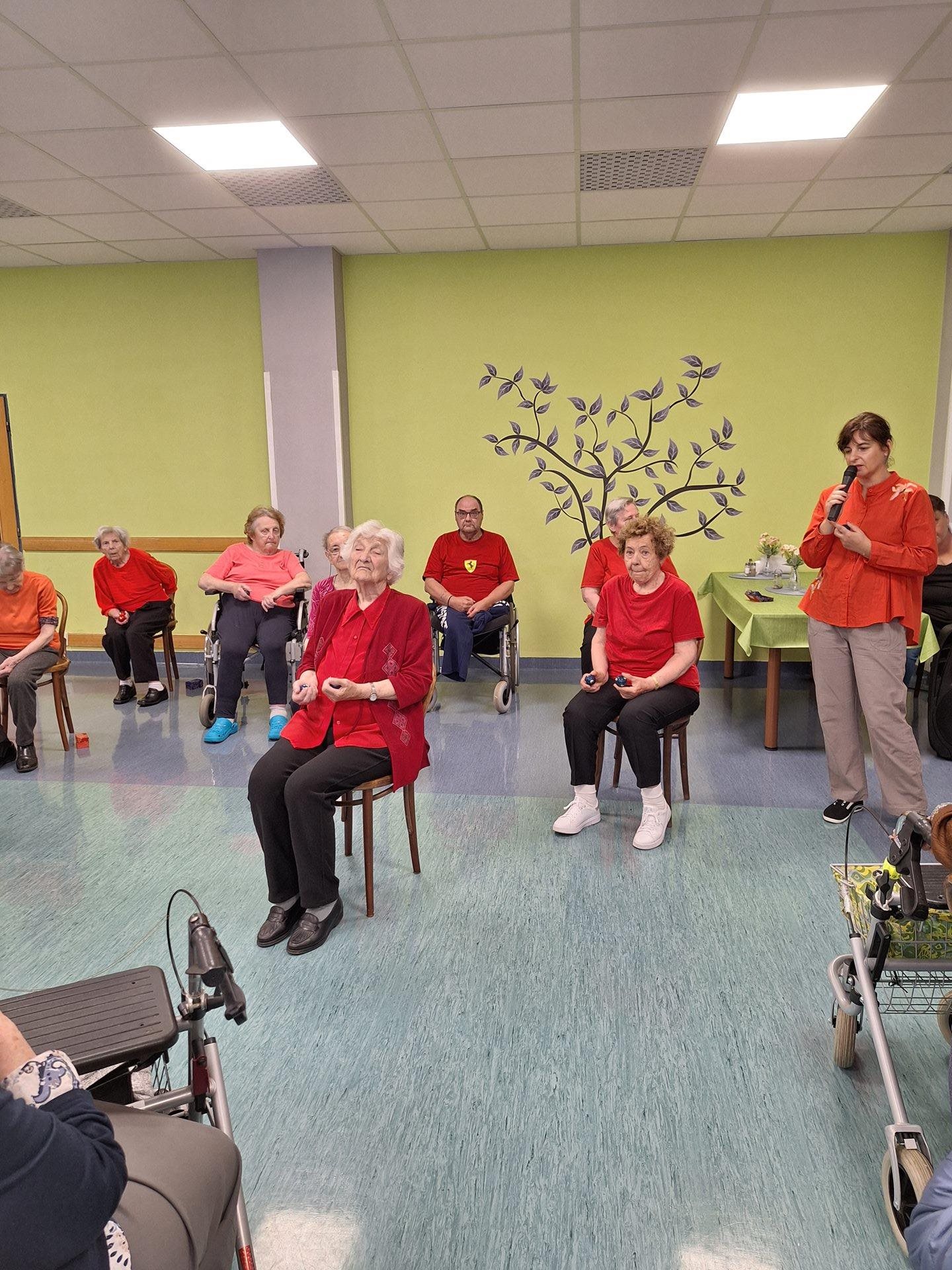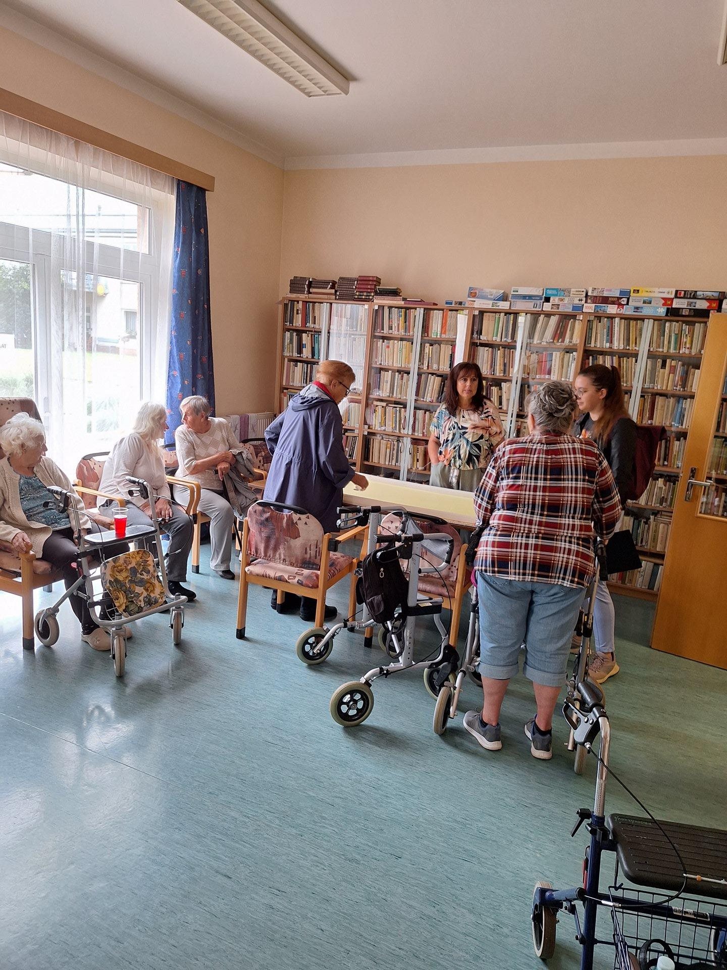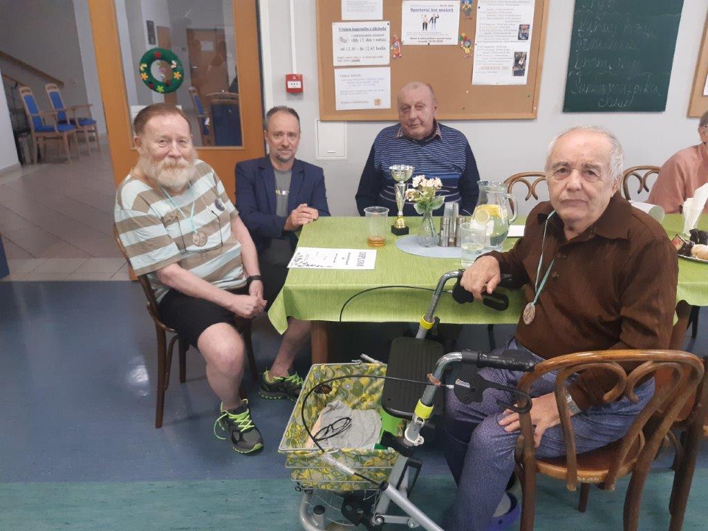 Letos přijeli soutěžit senioři z Domova Na Výsluní Hořovice, Domova seniorů Dobříš, Domova Unhošť a Domova TGM Beroun. Celkem soutěžilo 6 družstev v 10 dosciplínách. Počasí bylo trochu uplakané, proto jsme soutěže přesunuli z atria do vnitřních prostor, což ale neovlivnilo příjemnou atmosféru dne.