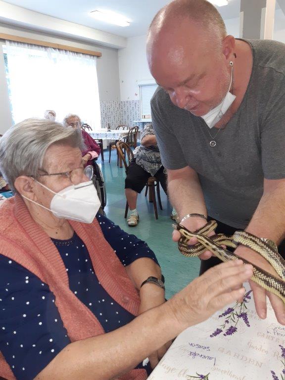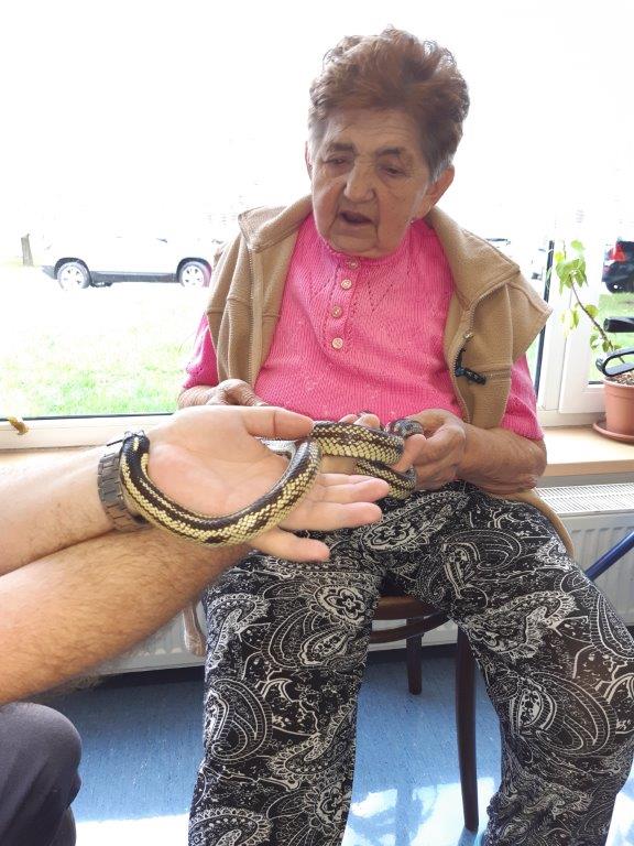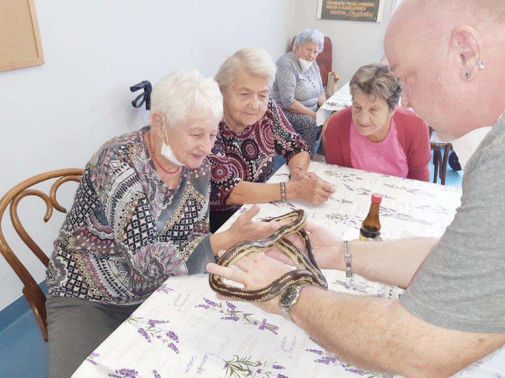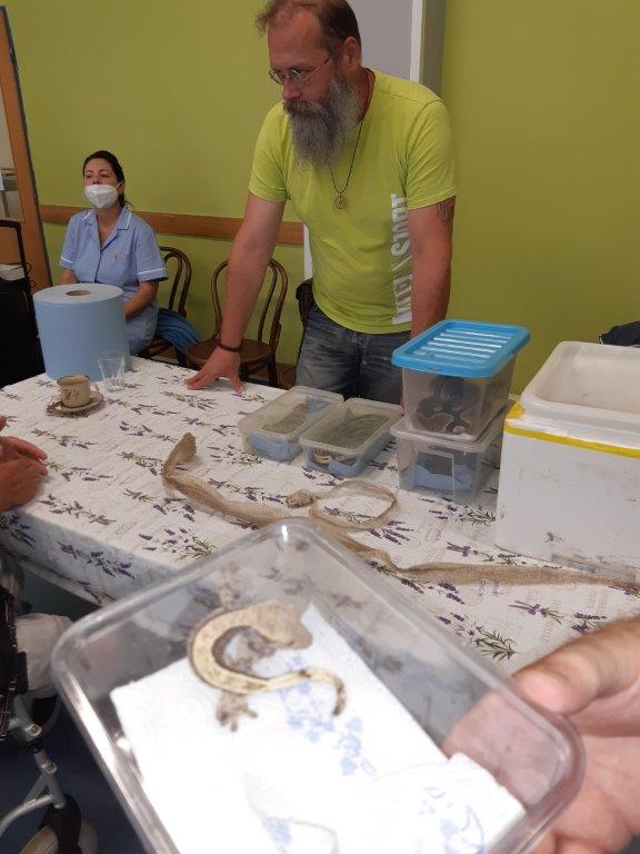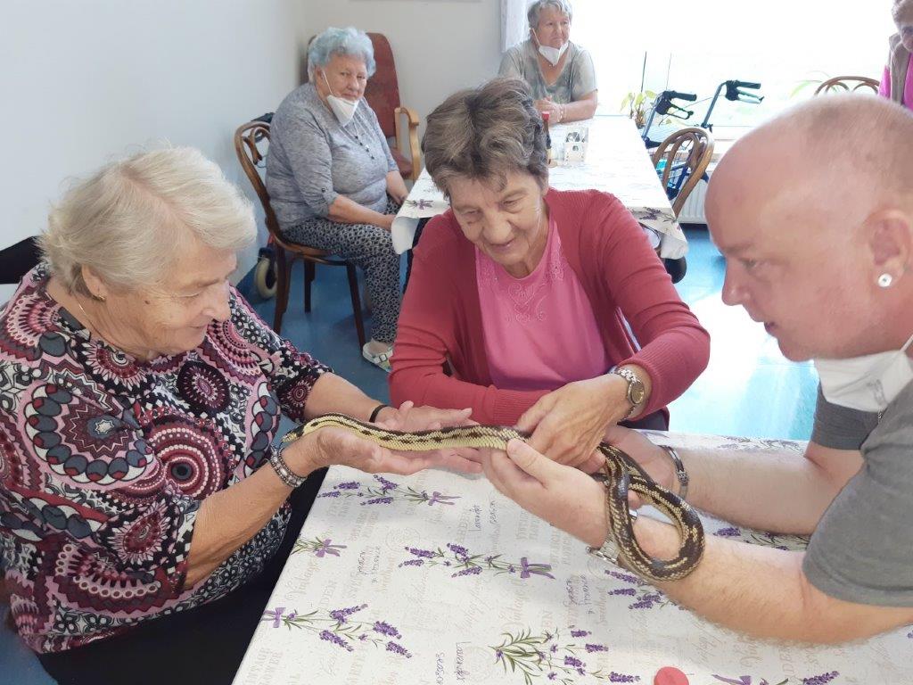 Měli jsme možnost si zblízka prohlédnout a dokonce i osahat hady, ještěry a želvu.