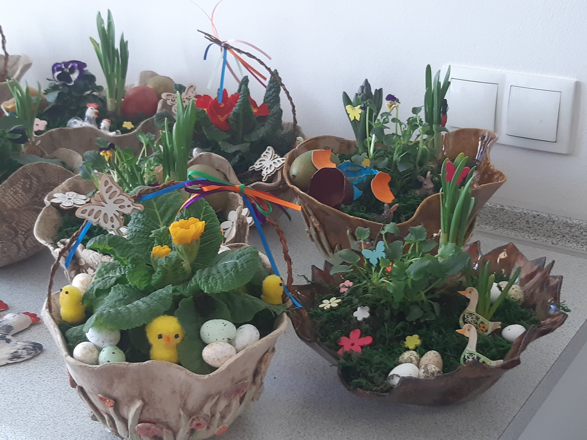 Hledání velikonočních vajíček z dětmi z místní mateřské školy.