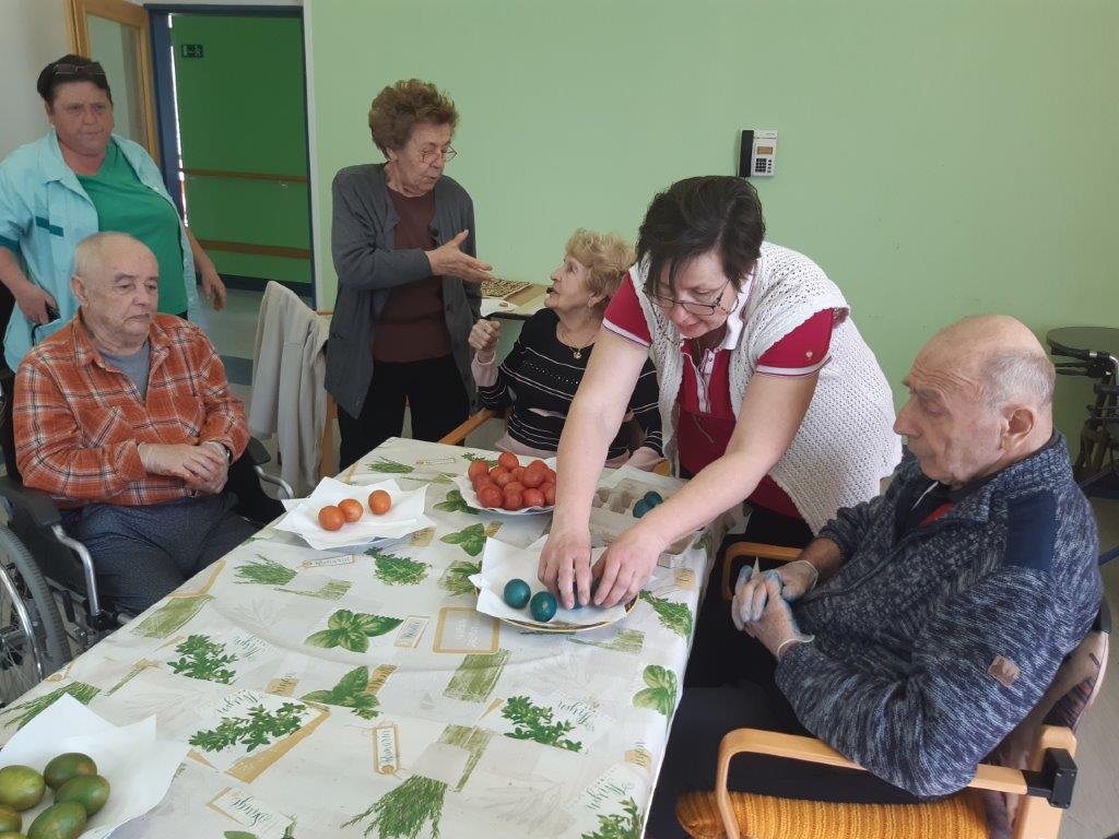 Velikonoce odstartovaly v Domově pečením a barvením vajíček. Na zelený čtvrtek nás navštívily děti z MŠ a rozběhly se spolu s našimi klienty po zahradě, aby si našly každý to svoje velikonoční vajíčko. Nechybělo ani sladké překvapení.
